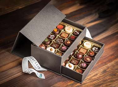 Drawer boxes are particularly well-suited for chocolate packaging for the following reasons: