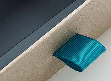Ribbon pull-tabs (in satin or cotton), thumb notches for simplicity, or dual-drawer designs for creative effects - Inserts