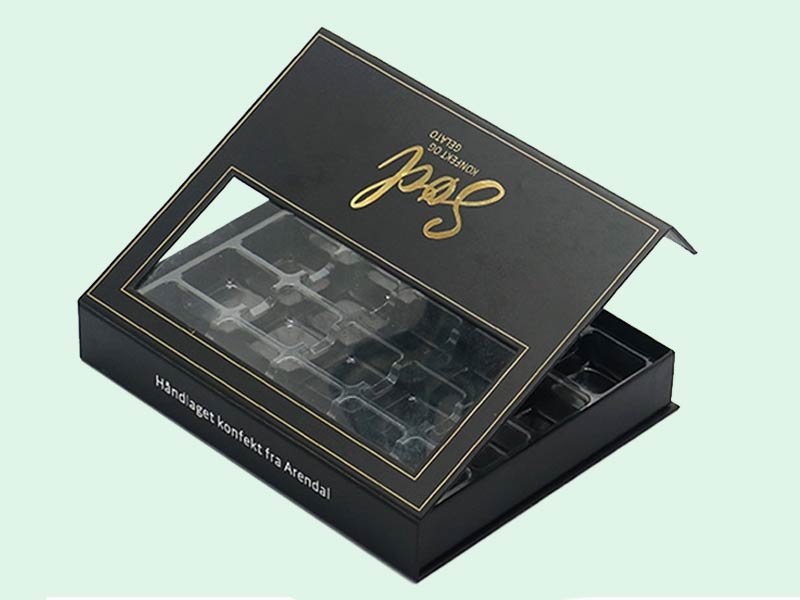 Choose from clear PET trays, colored plastic, or custom paperboard inserts — all food-safe and made to fit your chocolate layout.